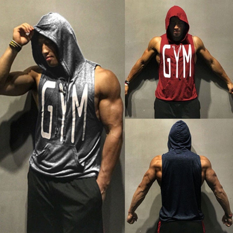 Gym Hot Men Clothing Hoodie Stringer Bodybuilding Tank Top hooded Muscle Shirt - BLACK